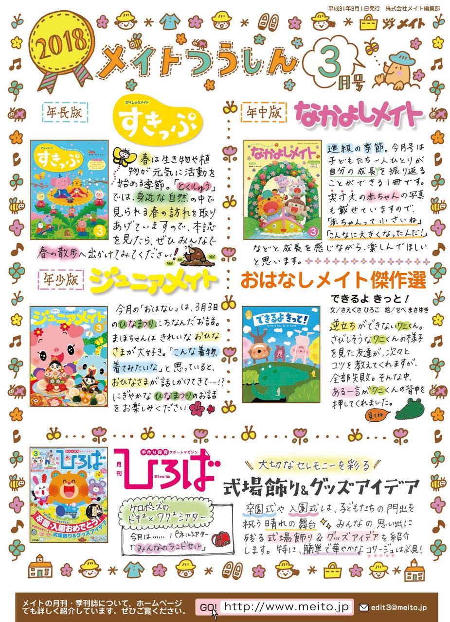 ★保育雑誌【月刊ひろば】に関するお問い合わせ・お申し込みは、お近くのメイト特約代理店またはメイト(03-5974-1700 代表)までお願いいたします。