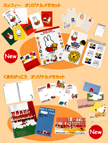 そして、日常保育で活躍するステーショナリーを取り揃えています。ミッフィーオリジナルメモセットとくまのがっこうオリジナルメモセットは数種類のデザインが1冊のメモ帳になっているので、とてもお得です。