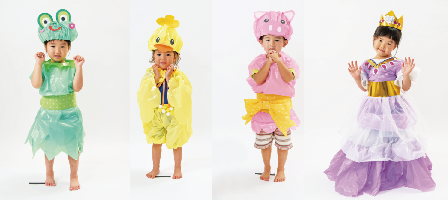 劇遊び、運動会、発表会の衣装も、はさみで切ってセロハンテープでペたっとつけるだけ!